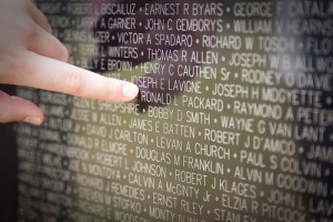As on The Wall, the names on The Wall That Heals are listed by day of casualty. Beginning at the center/apex, the names start on the East Wall (right-hand side) working their way out to the end of that wing, picking up again at the far end of the West Wall (left-hand side) and working their way back in to the center/apex, joining the beginning and end of the conflict at the center.