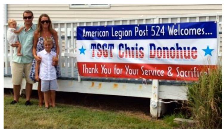 United States Air Force Technical Sergeant Chris Donahue, his wife Krista, son Otter and daughter Reven were welcomed to Ocean City American Legion Post 524 on Sunday August 30th as the ninth military family to be honored by the Rest & Relaxation Program.