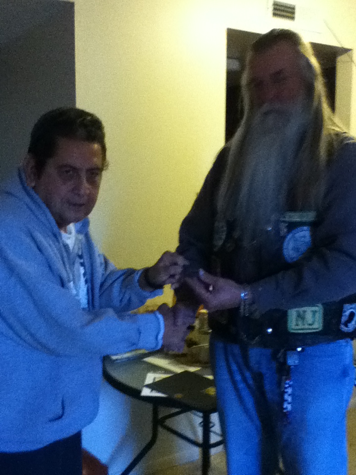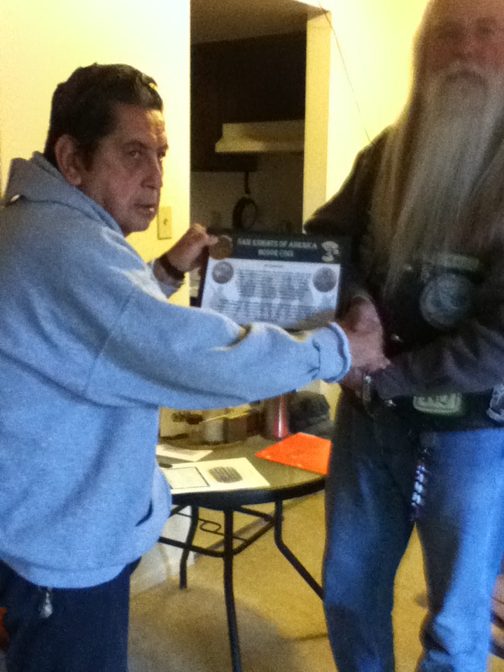 Padilla’s son, Joe, was located in Santa Fe, NM. In a private gathering, Fred “Ironhead” Gerdes, of the Delaware Valley Chapter of the Nam Knights of America, presented Joe with his fathers dog tag and coined him. Joe also shared photos of his father. See below.