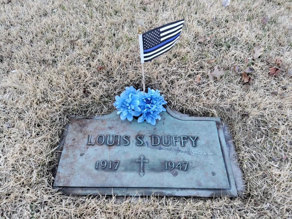 He was killed in an automobile accident on March 19, 1947 as he responded to a call from a local business. The owner of the business had become alarmed after noticing strange markings on his door, which were later linked to the local mafia. Office Duffy was transported to the hospital following the accident, but succumbed to his injuries a short time later.