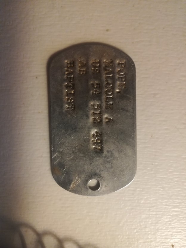 Malcolm Pope – Dog Tag to family – Vietnam Veteran