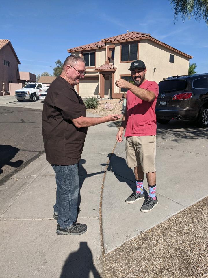 USMC Veteran Lajos Nyitray receiving his long lost dog tags from firefighter Carlos Payan in Arizona (Feb 2021)