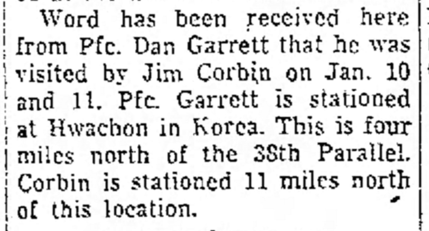He reported to Camp Lawton, Washington, on August 3, 1951 for overseas duty. He was stationed at Hwachon in Korea - four miles north of the 38th Parallel and returned back to the US in September of 1952.