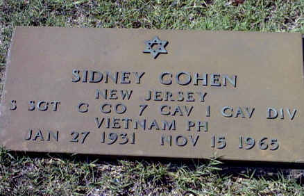Staff Sergeant Cohen served with 1st Battalion, 7th Cavalry Regiment, 1st Cavalry Division, Company C. Cohen was killed in action in the fighting at Ia Drang Valley on November 15, 1965 when he was shot in the chest. He was the first Camden, NJ resident to be killed in Vietnam.