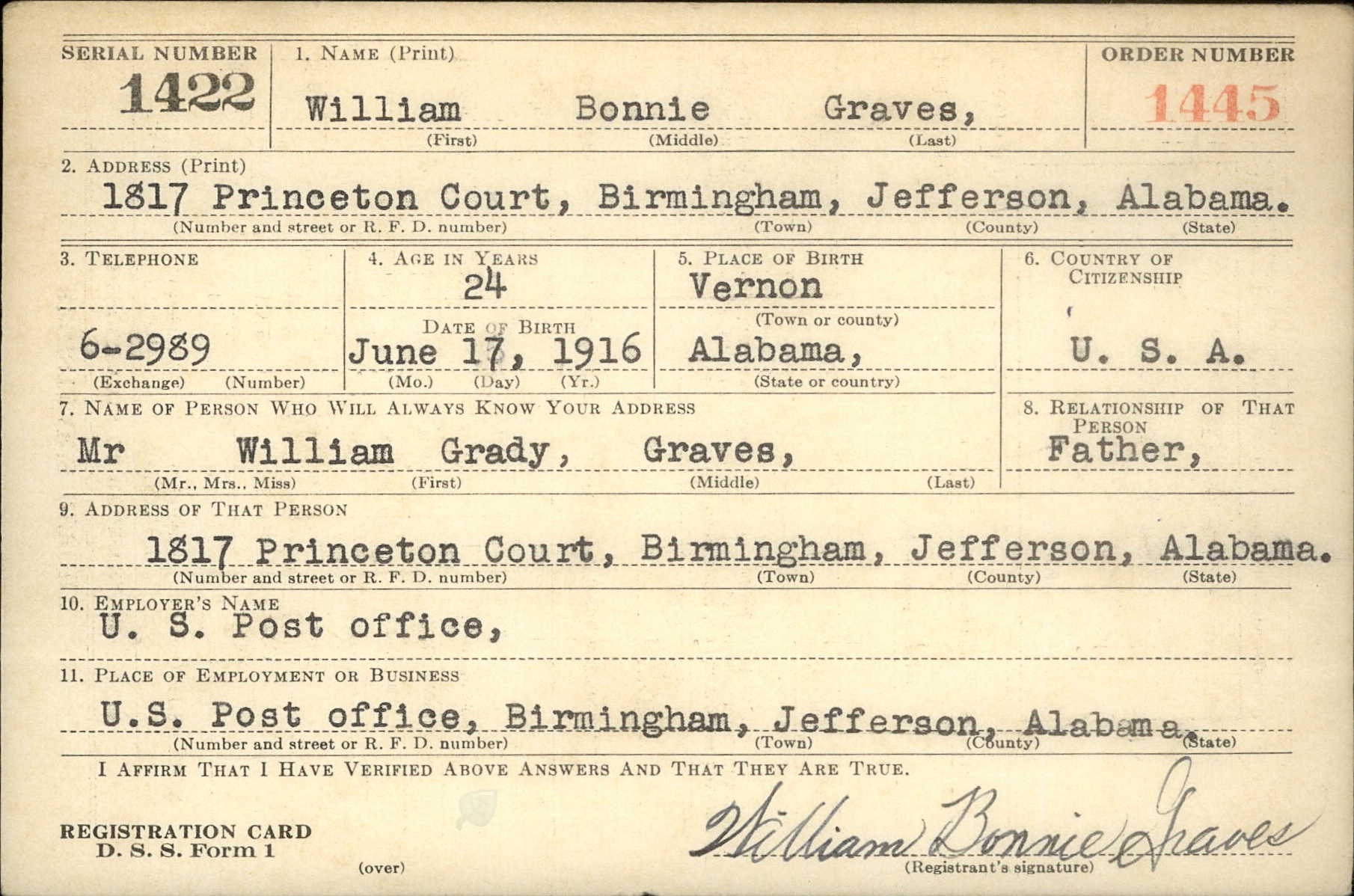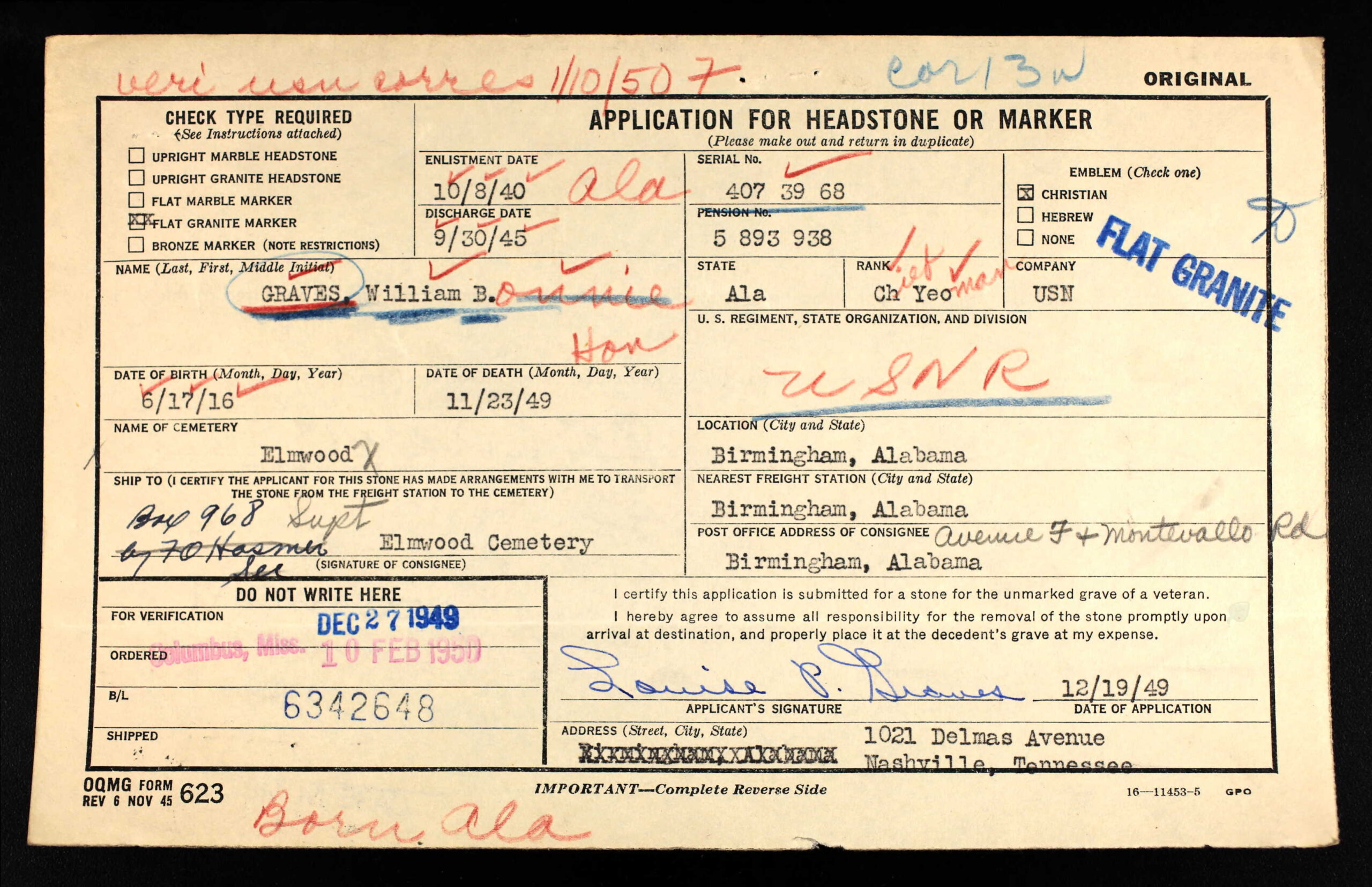 We were contacted by a woman, Tammie, who had found the dog tag of William Bonnie Graves while cleaning out items in her uncles home - she was looking for some help in locating Graves or his family.