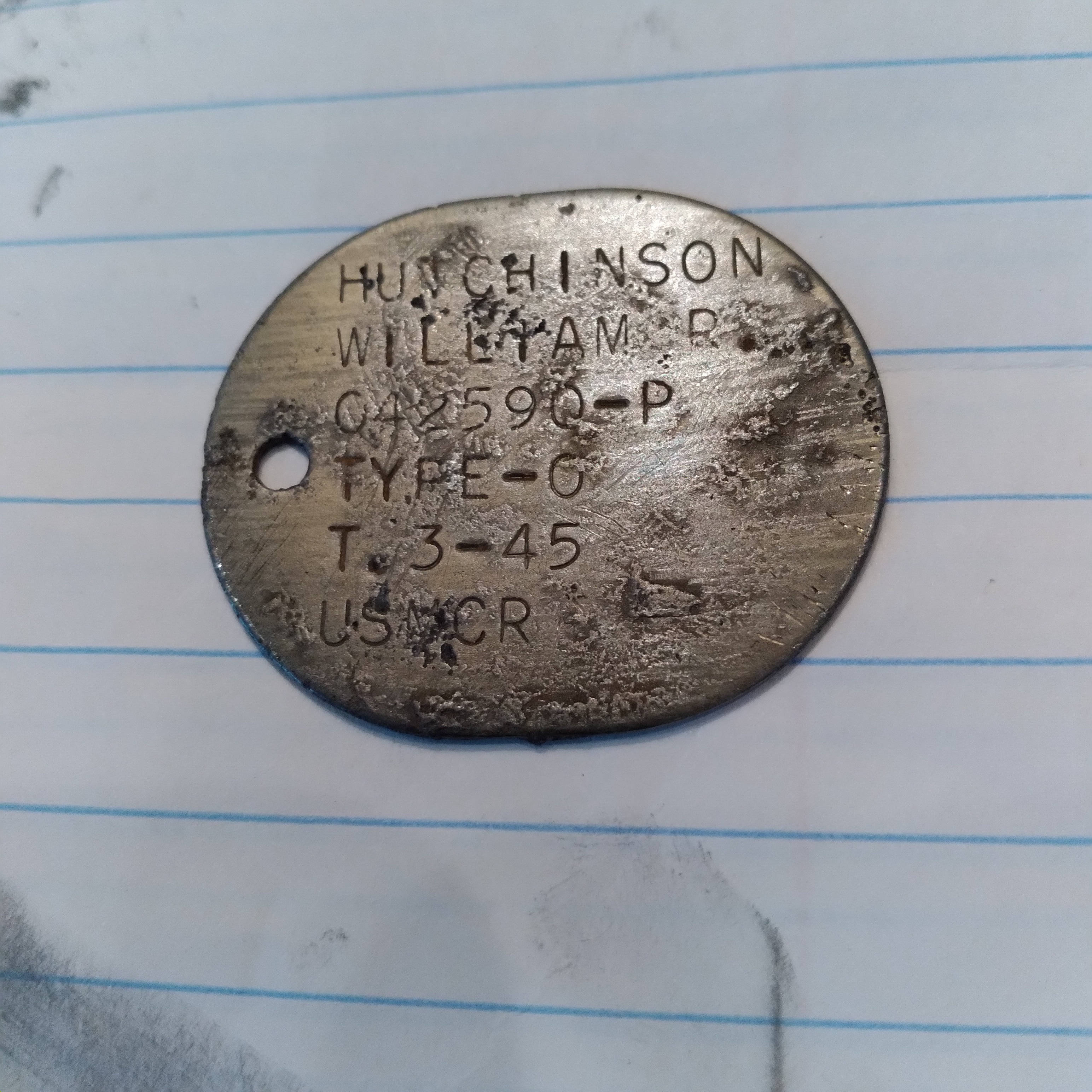 Military Dog Tag of William R Hutchinson returning to his daughter