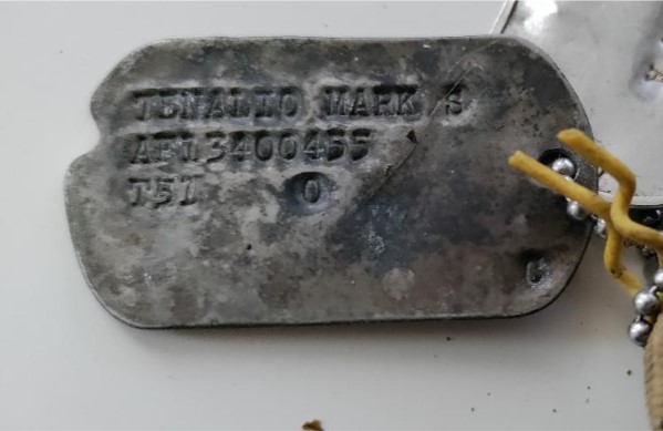Mark Samuel Tenalio died 3 APR 2007 in Lake Jackson, TX. We made contact with his eldest son, Michael Tenalio in New York and sent the dog tag to him in May 2023.