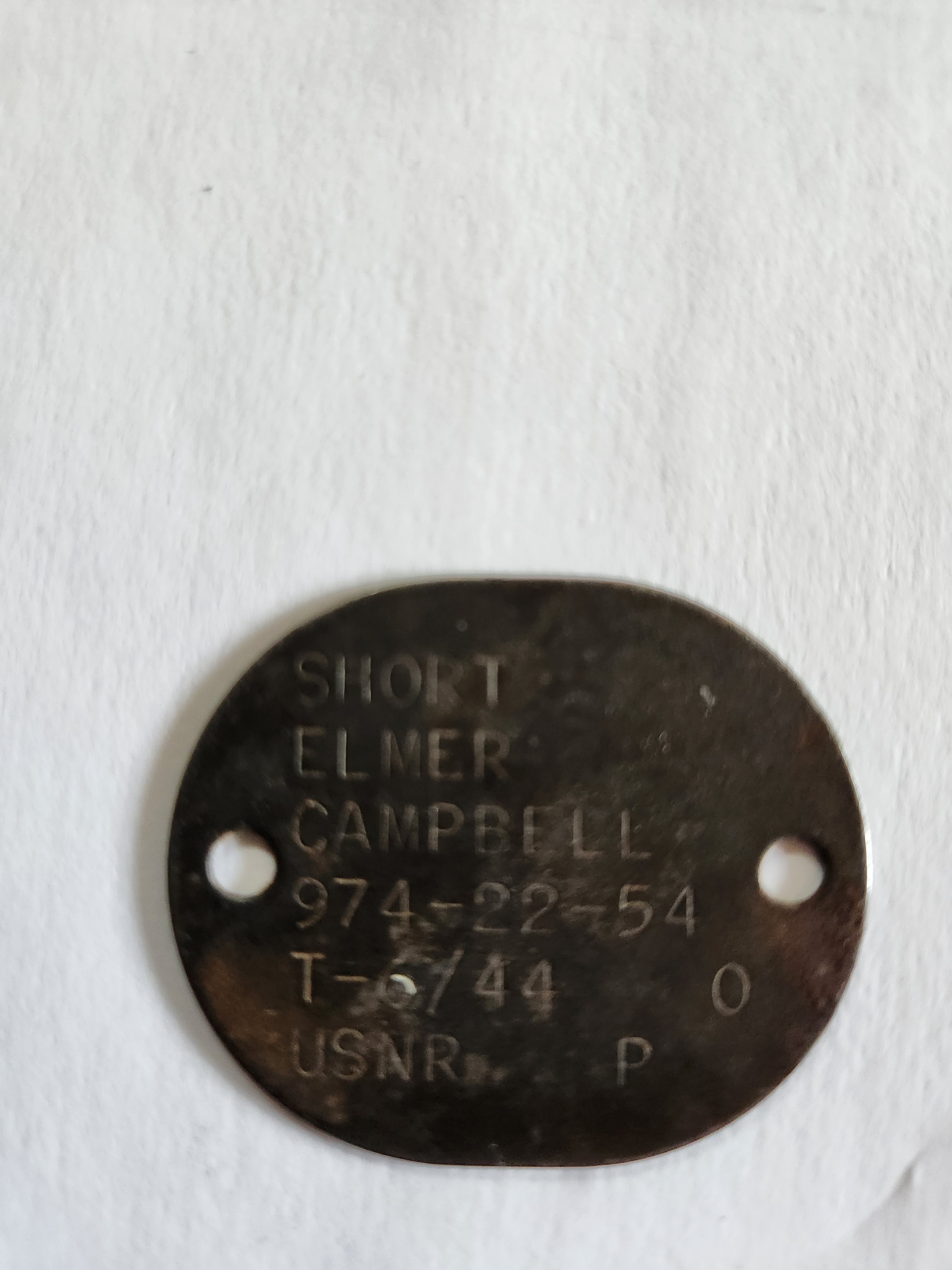 One of the dog tags that Mr Sapp found belongs to Elmer Campbell Short. Elmer C Short, at the age of 70, passed away at the Veterans Hospital on April 26, 1978 in Kansas City Missouri. He was born in Salem, Arkansas and had lived in Missouri for 28 years. He was a Navy Veteran in WWI and then became a construction laborer more than 30 years before he retired in 1969. He is buried in Mount Washington Cemetery. David Owen mailed Elmer's dog tag to his daughter, Vera Bullard.
