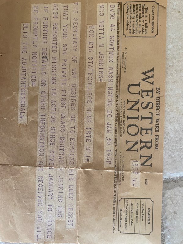 Thank you for your service Bertram Jenkins - you are not forgotten!