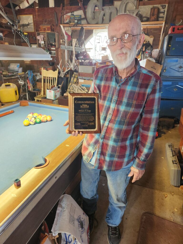 In December of 2023, David Owen presented a Commendation Plague to Bill Sapp on behalf of himself and Sue Quinn-Morris/ Patriot Connections Dog Tag Project for his commitment and dedication to getting the military dog tags of his comrades back home.