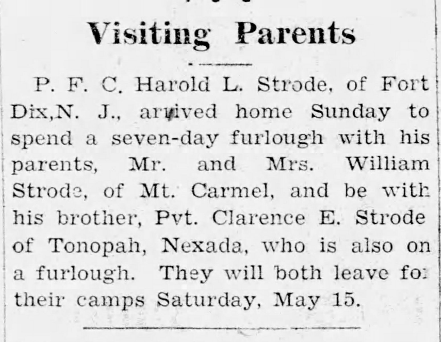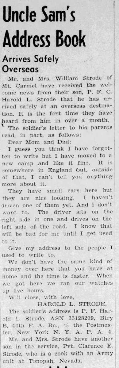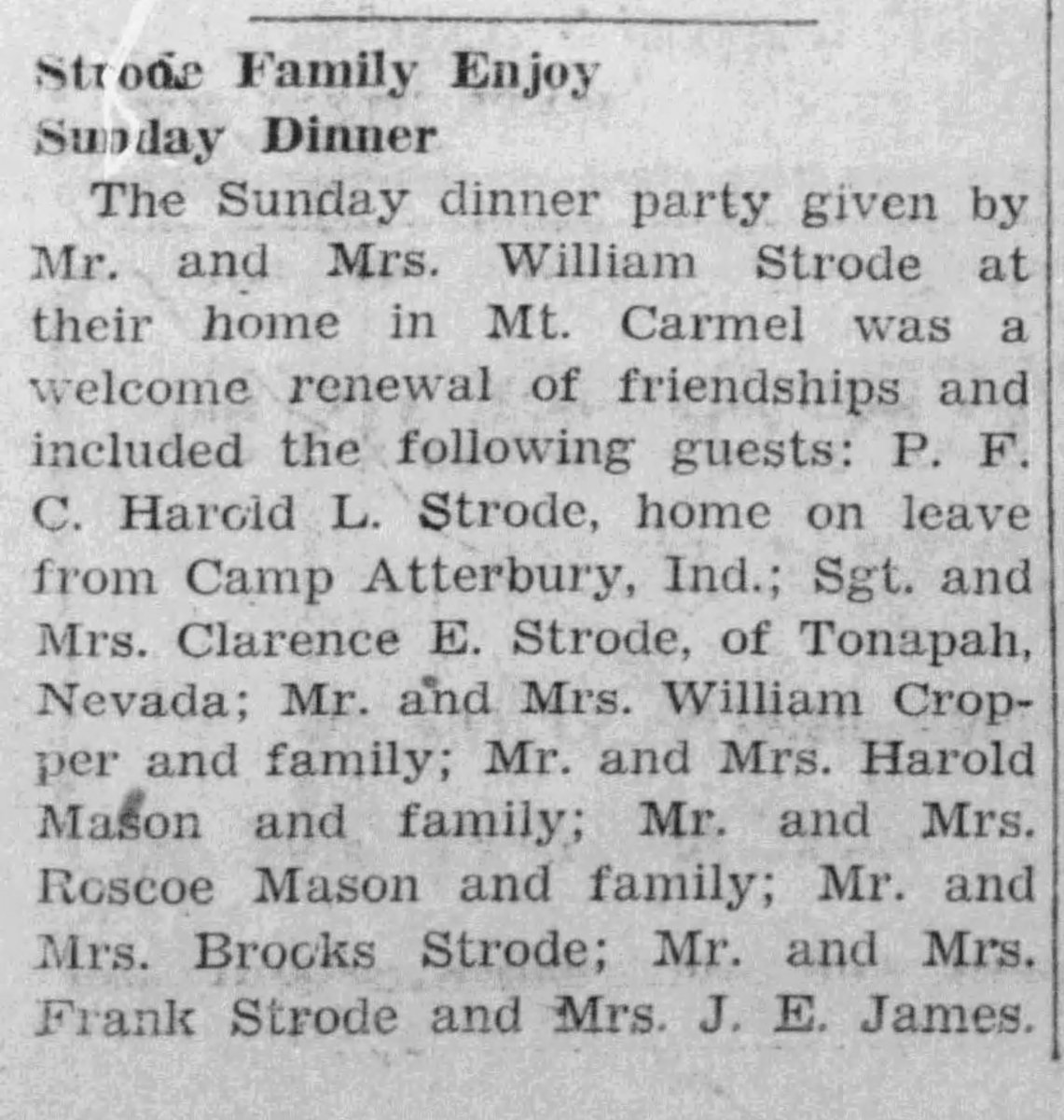 One of the dog tags belongs to Clarence E Strode, a WWII veteran. Clarence Strode entered the Army Air Force in November 1942 and served as a baker, being stationed at Camp Tonopah for a majority of his time in the service. Unfortunately, this WWII hero passed away at the age of 71, in Florida.