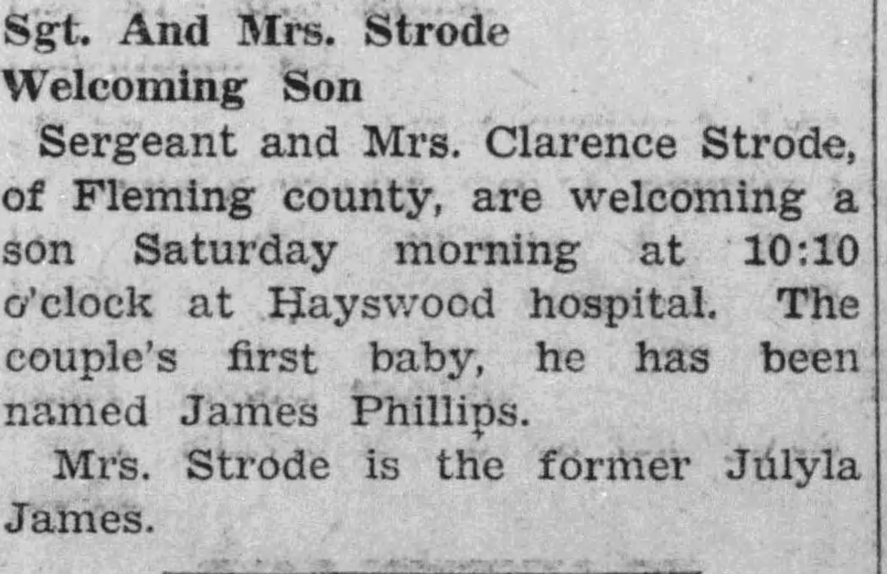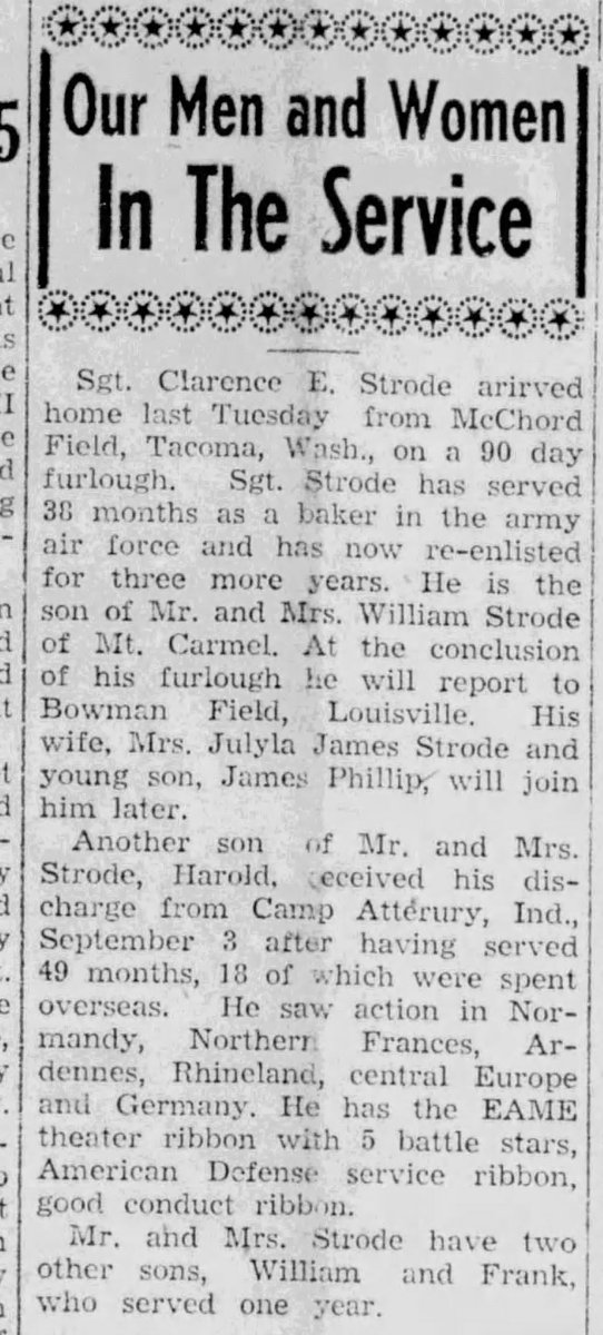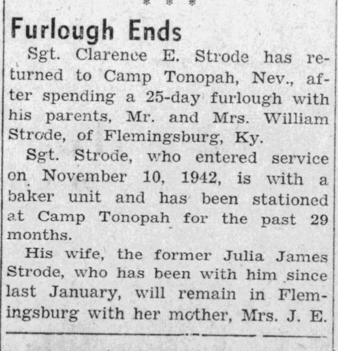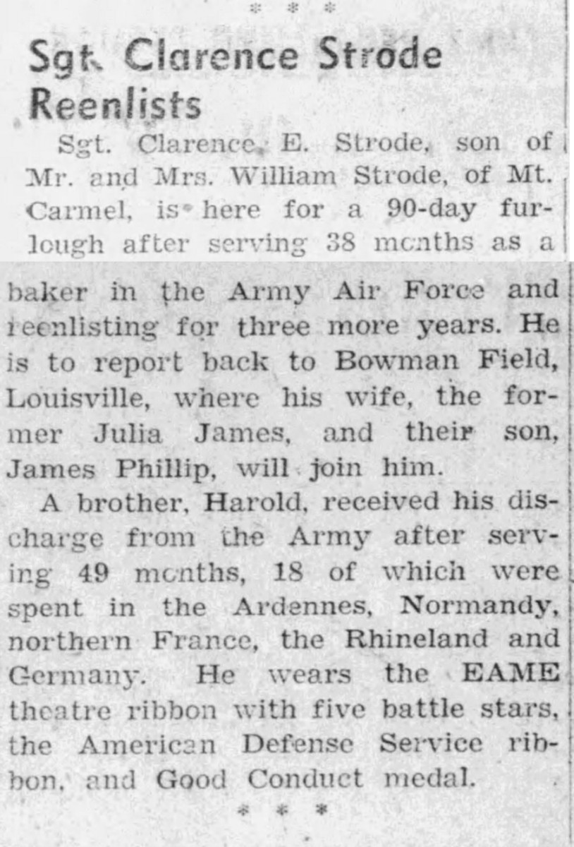 He is buried in Mount Carmel Cemetery in Fleming, Kentucky. His wife Julyla passed away in 2001. See below for some articles/reference to this WWII veterans time in service. RIP Clarence, and thank you for your service.