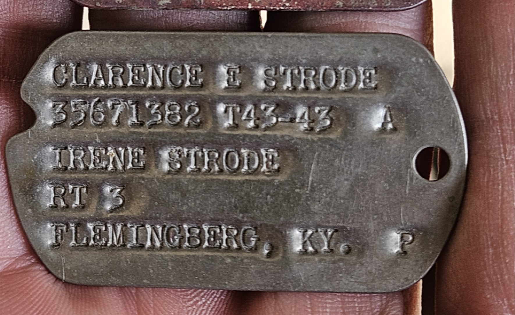 Military Dog Tag of Clarence Strode found at Tonopah Nevada training grounds