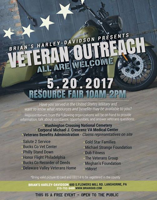 Brians Harley Davidson Presents – Veterans Outreach – May 20, 2017 10am – 2pm.