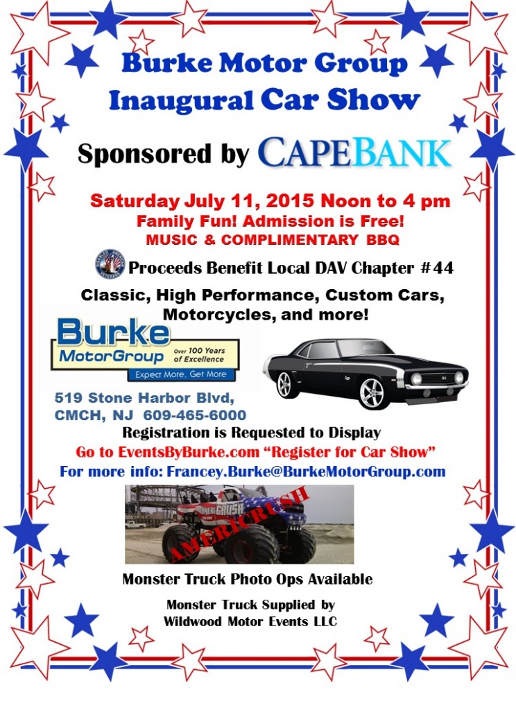 Burke Motor Group is hosting our Inaugural Car and Motorcycle Show. Event proceeds will benefit our local DAV Chapter 44.