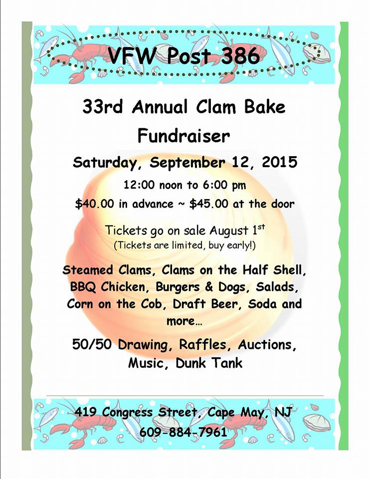 33rd Annual Clam Bake Fundraiser – VFW Cape May