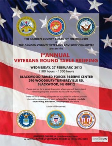 A brief general Q&A will follow and each panelist will make themselves available after the discussion for one-on-one questions. Please RSVP online at www.camdencounty.com or call the Office of Veterans Affairs at 856-374-5801.