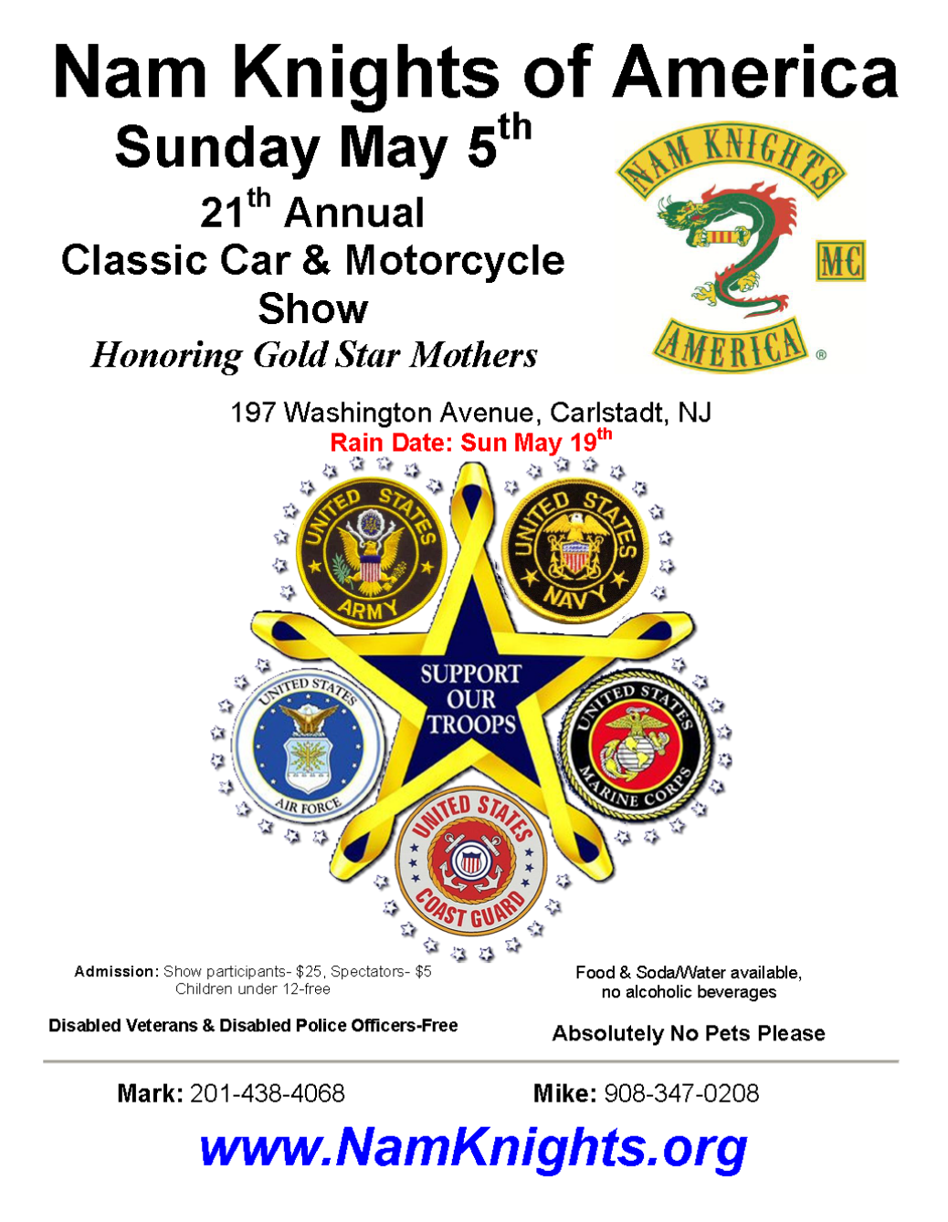 Nam Knights of America MC 21st Annual Car & Motorcycle Show – Honoring Gold Star Mothers