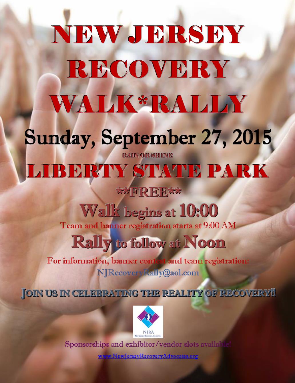 Liberty State Park will provide the venue for the 2015 statewide Recovery Walk and Rally on Sunday, September 27, 2015. This event will begin with a ceremonial walk starting at 10:00 AM, followed by an all day rally with music, food, educational exhibits, performances and motivational speakers.