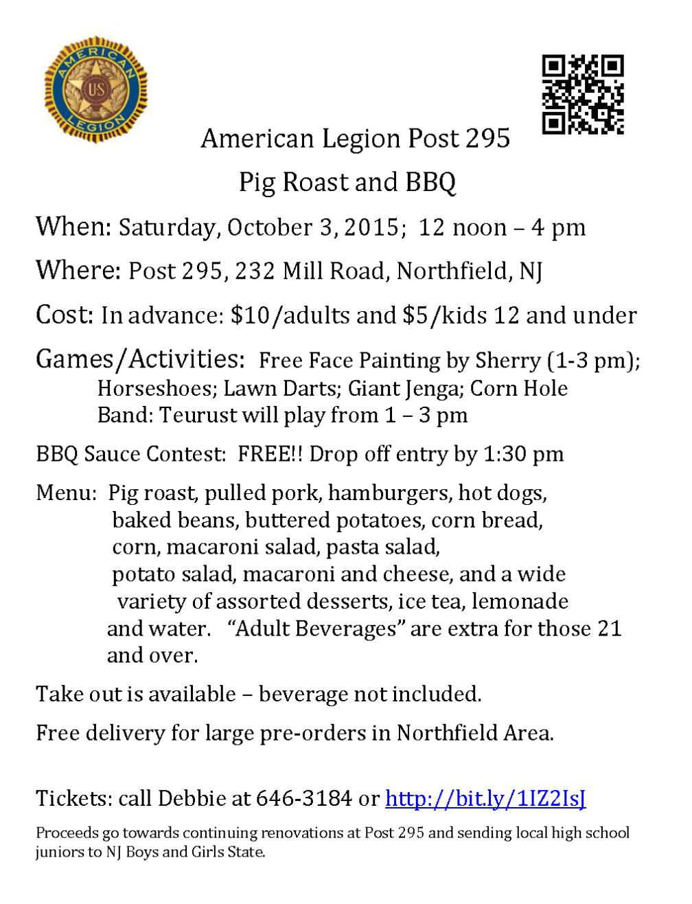 Menu: Pig roast, pulled pork, hamburgers, hot dogs,