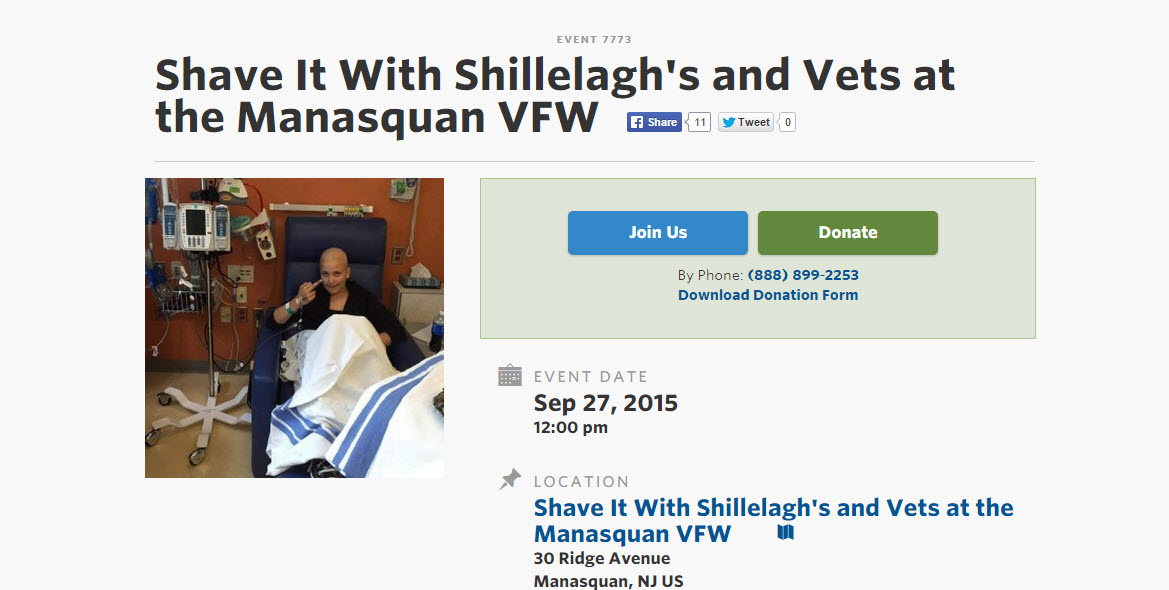 Come join the Shillelagh’s and the Vets at the Jersey Shore in shaving your hair for children battling Cancer. This will be a glorious day held at Manasquan VFW Post 1838 on September 27, 2015 at 12 p.m. Food, Refreshments and plenty of fun will be served on this day. If you can’t make it and want to donate, please do so at: https://www.stbaldricks.org/events/mypage/7773/2015