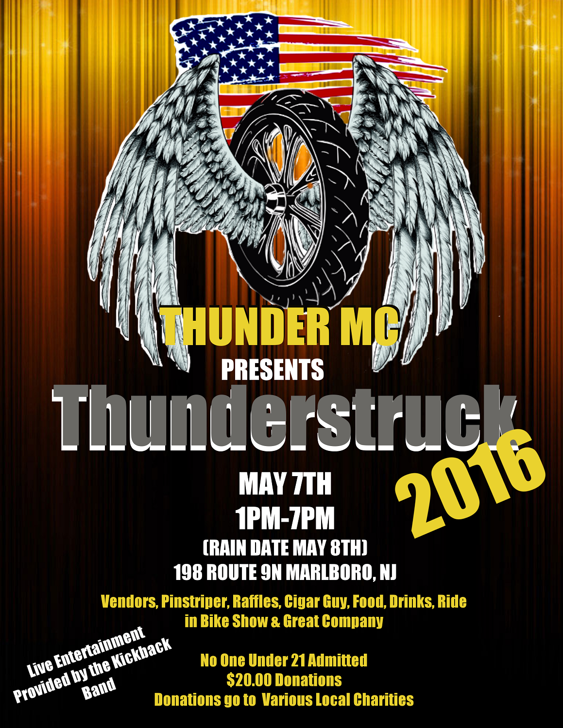 The event takes place at Thunder M.C. Club House, 198 Route 9 North in Marlboro beginning at 1:00 pm. Admission is $20.00. You must be at least 21 years of age to be admitted. The event includes a ride in bike show, vendors, raffles, food, live entertainment and more. The ride in bike show will be judged in five classes. Trophies will be awarded to winners. There is no additional fee to enter the bike show. Donations will go to various local charities. IN case of rain the event will be held on May 8th. For more information call (732) 718-5171,  or go to http://www.thundermotorcycleclub.com.