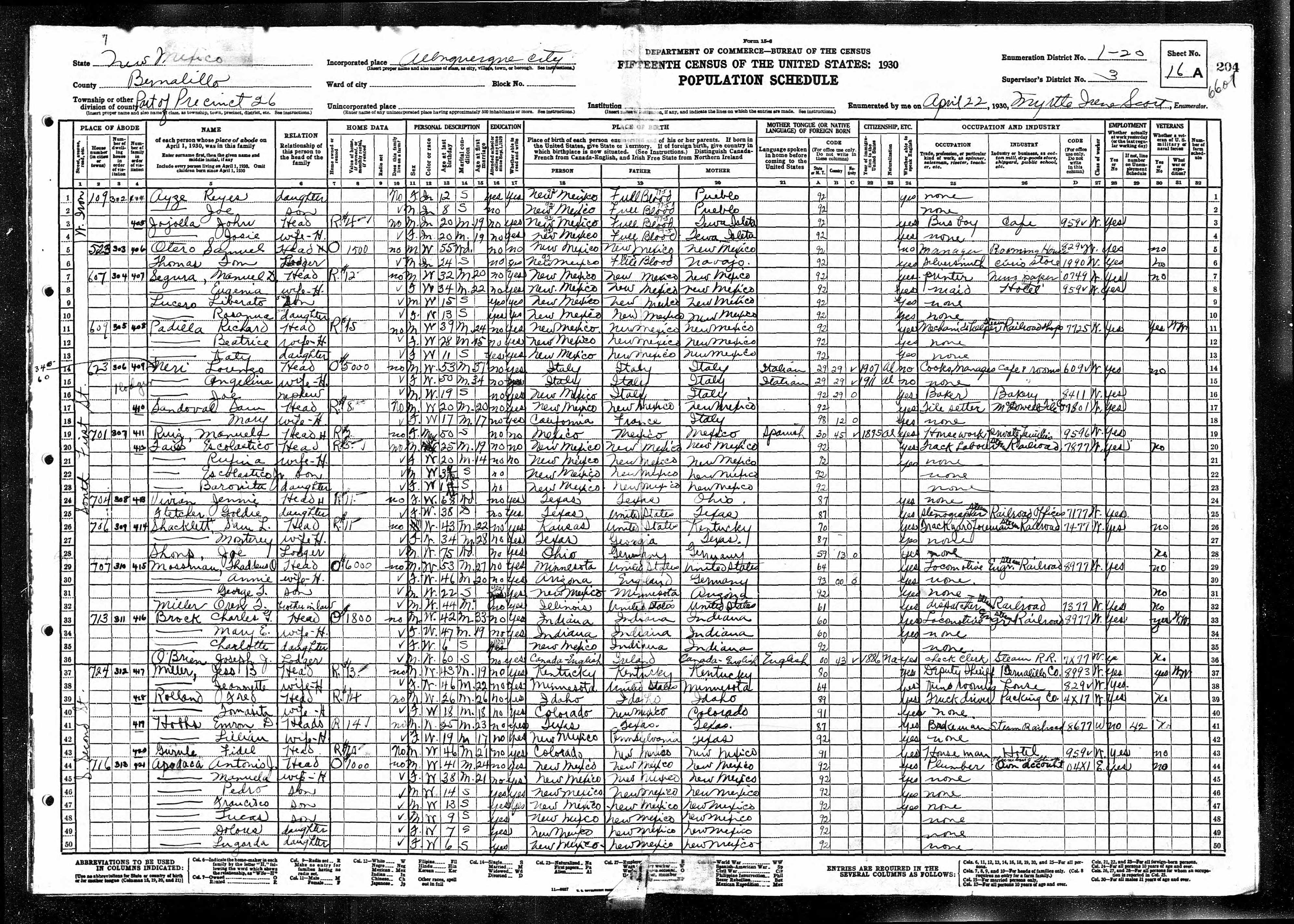 Lucas Apodaca (Peter's father), born 12 Apr 1921, grew up in Albuquerque, New Mexico (716 S Second  St, Albuquerque ). His father, Antonio Apodaca (Peter's grandfather), was a plumber and had his own plumbing business. In 1940, Lucas is 19 yrs old, single, and listed as a plumbers helper. (see 1930 / 1940 Census)