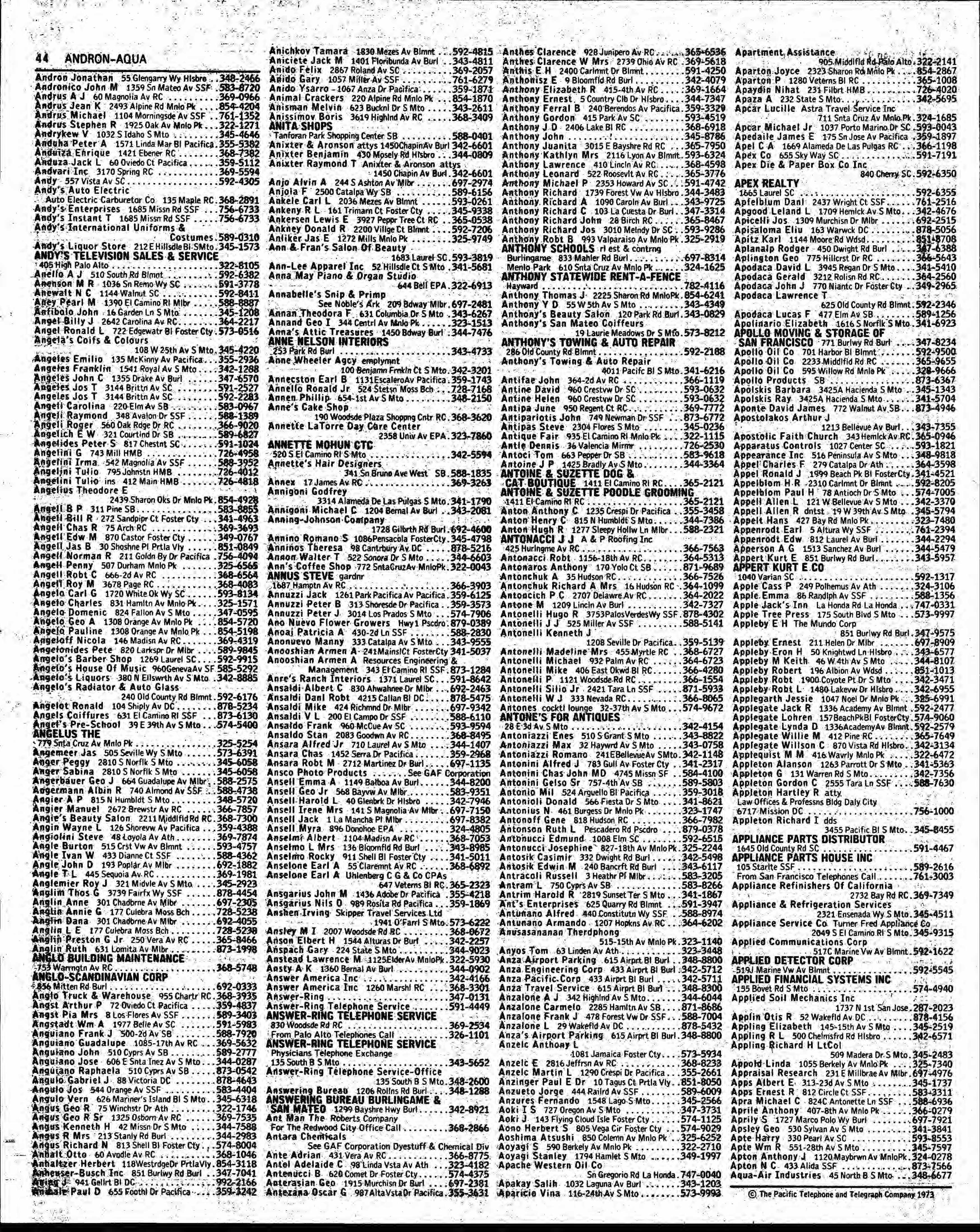 Peter's brother - Richard Apocada, born 16 Feb 1952, married Rhonda J April 28, 1979  in Stanislaus,CA. In 1996 they lived at 896 W National Ave, Clovis, CA. Addresses associated with Richard/Rhonda are 2951 College Ave, Livermore, CA - 3872 Princeton Way, Livermore, CA and 1416 4th St , Livermore, CA. Possible phone numbers;  530-823-3667 and 925-455-5113